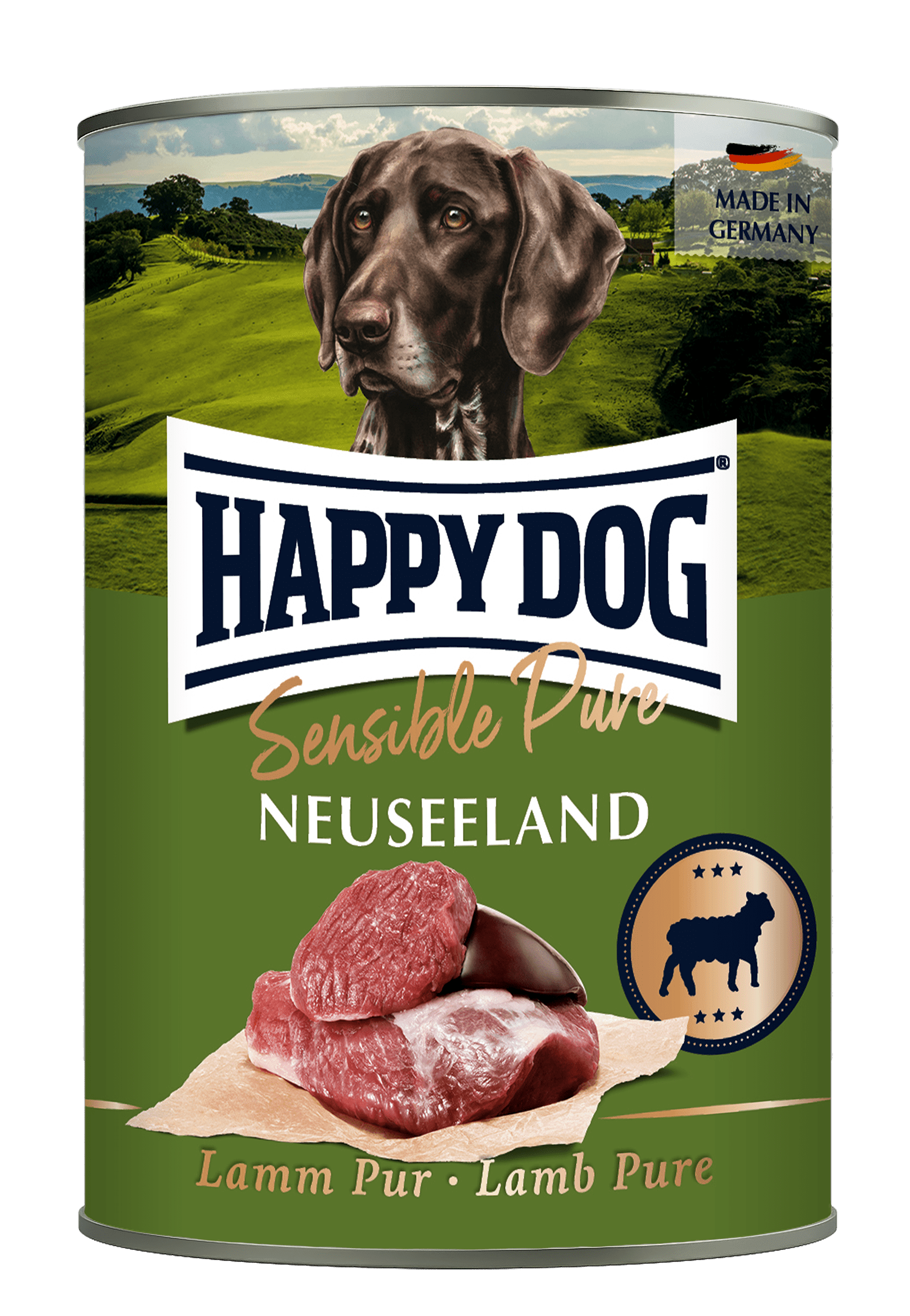 Happy Dog Sensitive Pure Neuseeland våtfôr - vår førsteklasses kjøttbaserte mat er laget av 100 % verdifullt kjøtt sammen med innmat som hjerte, lunger og lever. Den inneholder også viktige vitaminer og mineraler. Kjøttet og innmaten kommer utelukkende fra lam*. Og selvfølgelig er våtmaten vår laget uten soya eller andre plantebaserte tilsetningsstoffer.