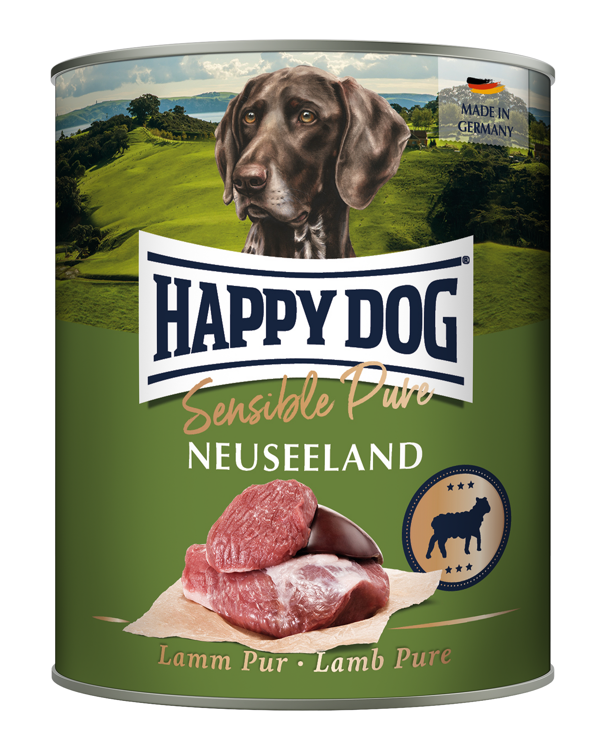 Happy Dog Sensitive Pure Neuseeland våtfôr - vår førsteklasses kjøttbaserte mat er laget av 100 % verdifullt kjøtt sammen med innmat som hjerte, lunger og lever. Den inneholder også viktige vitaminer og mineraler. Kjøttet og innmaten kommer utelukkende fra lam*. Og selvfølgelig er våtmaten vår laget uten soya eller andre plantebaserte tilsetningsstoffer.